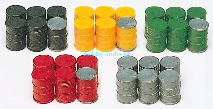 W zestawie 30 beczek z pokrywami w 5 kolorach (pokrywy są osobno, można wykorzystać pokrywę w kolorze innym niż beczka - jak na zdjęciu lub pozostawić beczkę bez pokrywy).