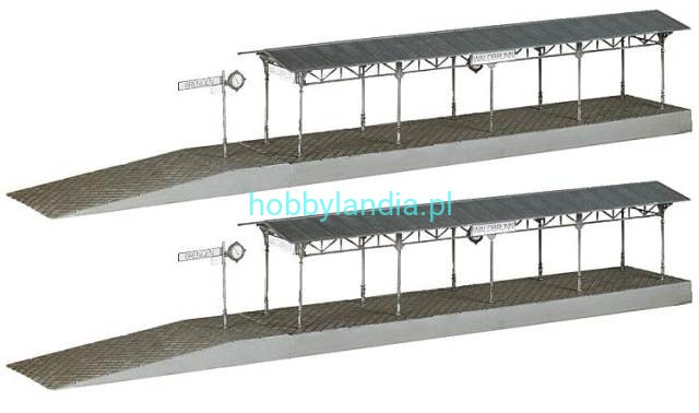 2 perony H0 1:87 częściowo zadaszone (tej samej wysokości), Faller 120204.