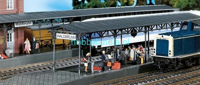 Perony H0 1:87 pasują do Dworca Waldbrunn Faller 110099, stacji Faller 110124, Faller 110123.