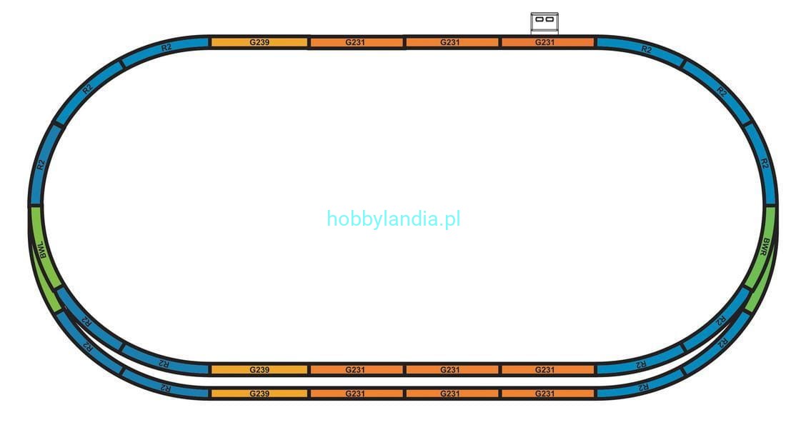 - 12 torów prostych: 9 torów Piko 55201, długość 231 mm oraz 3 tory Piko 55200, długość 239 mm,