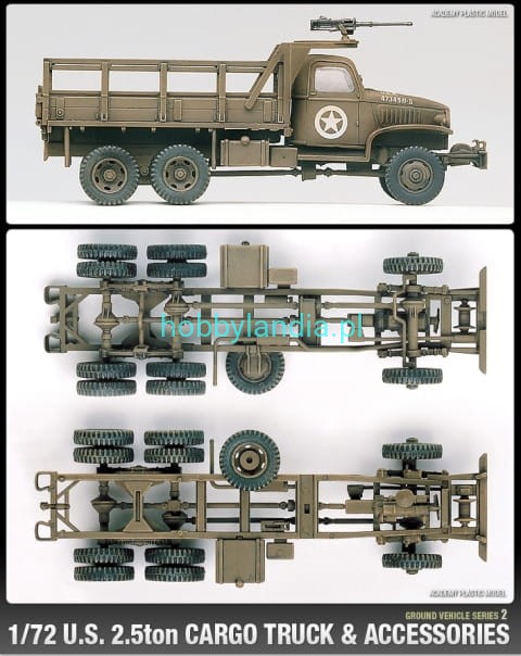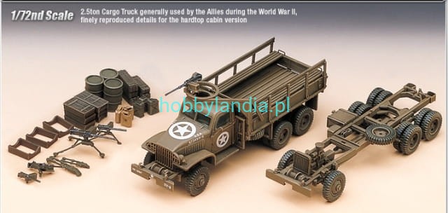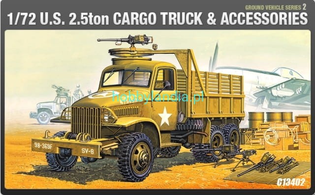 Amerykańska ciężarówka wojskowa 2.5 ton 6x6 Cargo Truck w skali 1:72 do sklejania, Academy 13402.