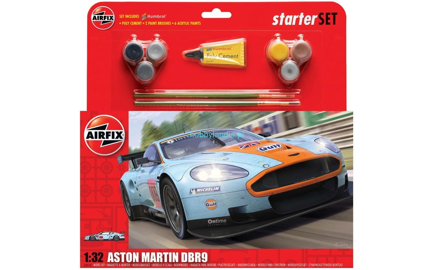 Samochód wyścigowy Aston Martin DBR9 Gulf GT1 w skali 1:32, Airfix 50110.