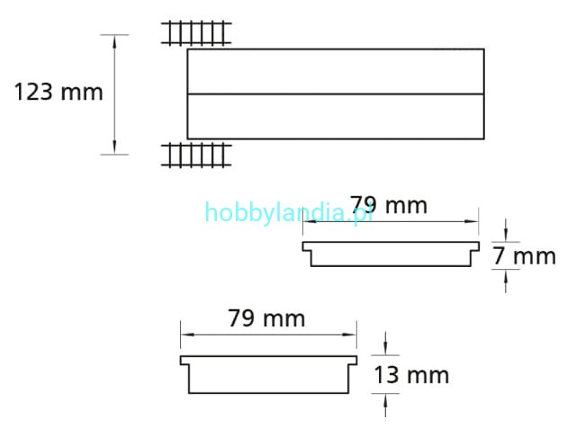 Wymiary: 33,6 cm x 7,9 cm x 6,4 cm (7 cm) (długość, szerokość, wysokość).