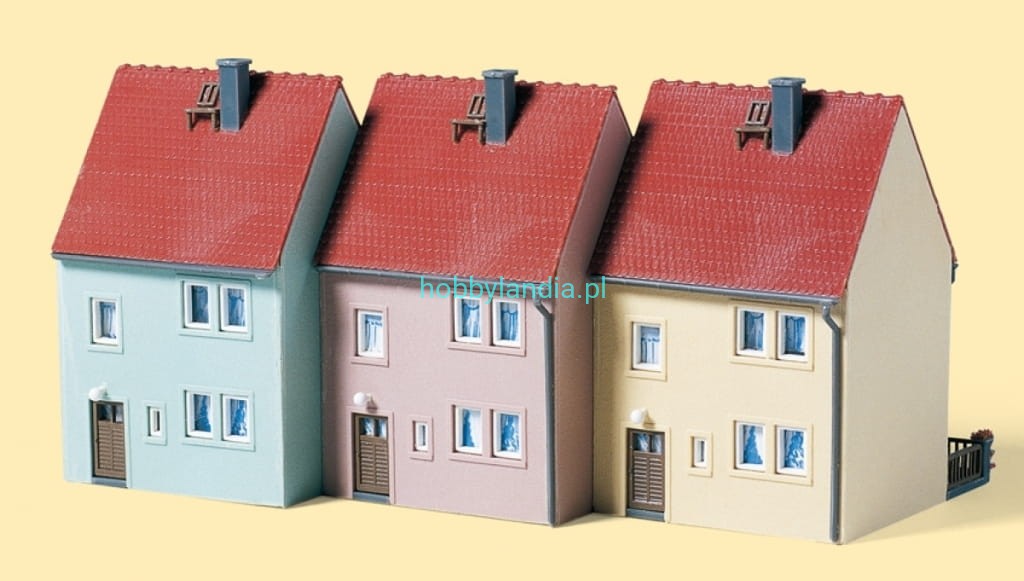 Do ustawienia na makiecie/dioramie jako 3 domki wolnostojące lub w zabudowie szeregowej.