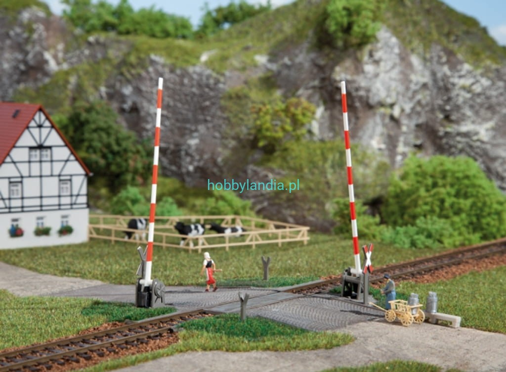 Przejazd kolejowy ze szlabanami H0 1:87 do sklejania, Auhagen 41604.