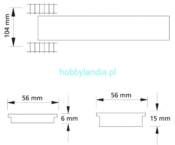 Perony o wymiarach 20,5 cm x 5,6 cm x 0,6 cm oraz 20,5 cm x 5,6 cm x 1,5 cm (długość, szerokość, wysokość).