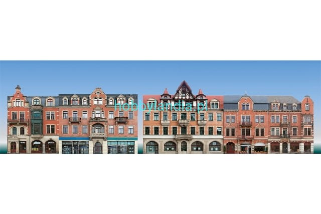 Reliefy 5 fasad kamienic miejskich H0-TT tło do makiety, Auhagen 42501.