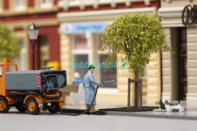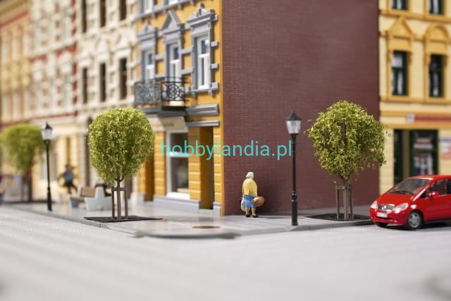 Drzewka pasują do płyty chodnikowej Auhagen 42557 oraz kratek na drzewa Auhagen 42558.