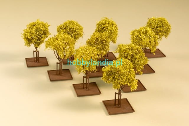 Zestaw modelarski - 10 drzewek z podparciami do złożenia.