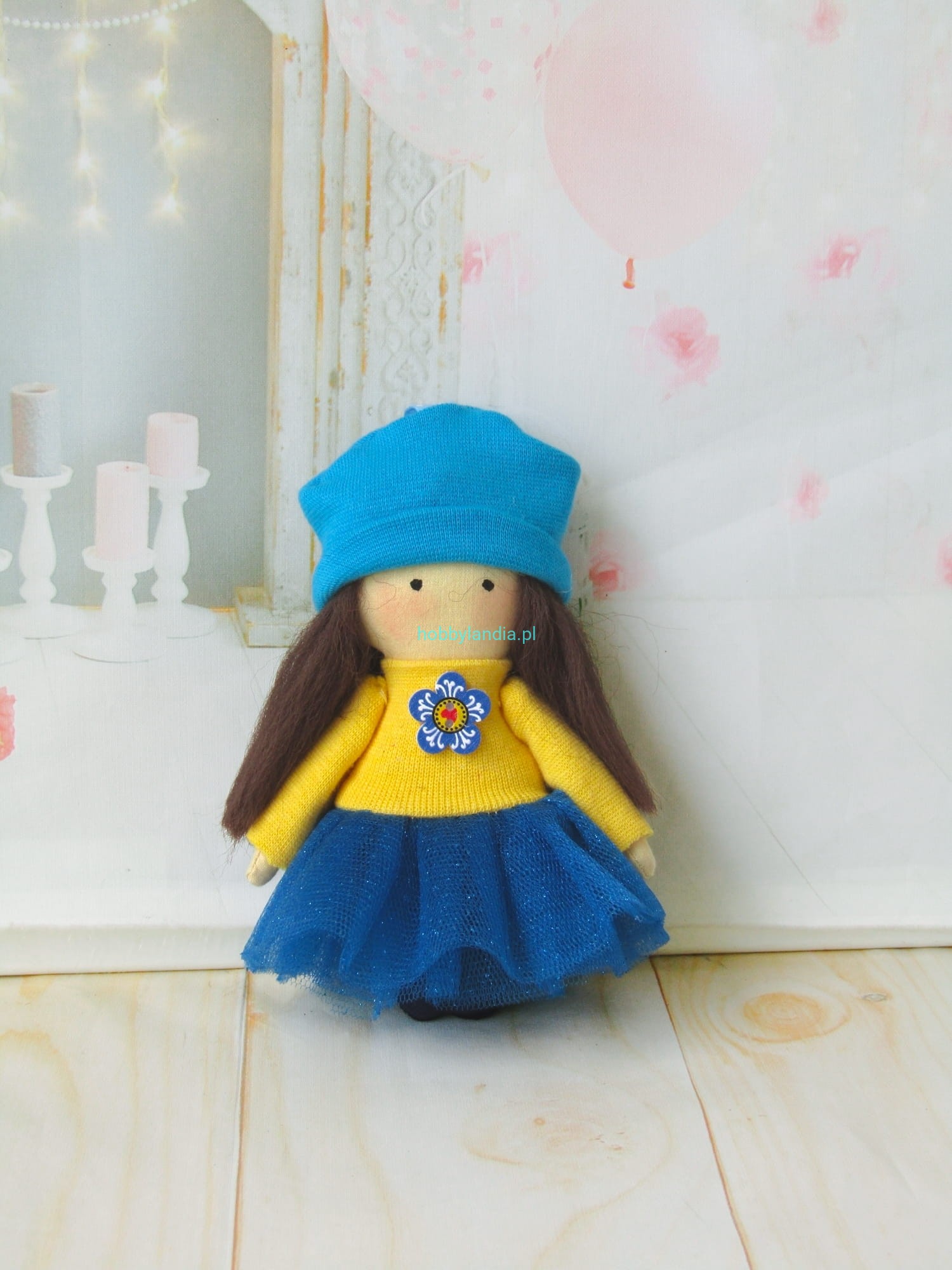 | Materiał | bawełna, wypełnienie, wstążka satynowa, włóczka, guzik |