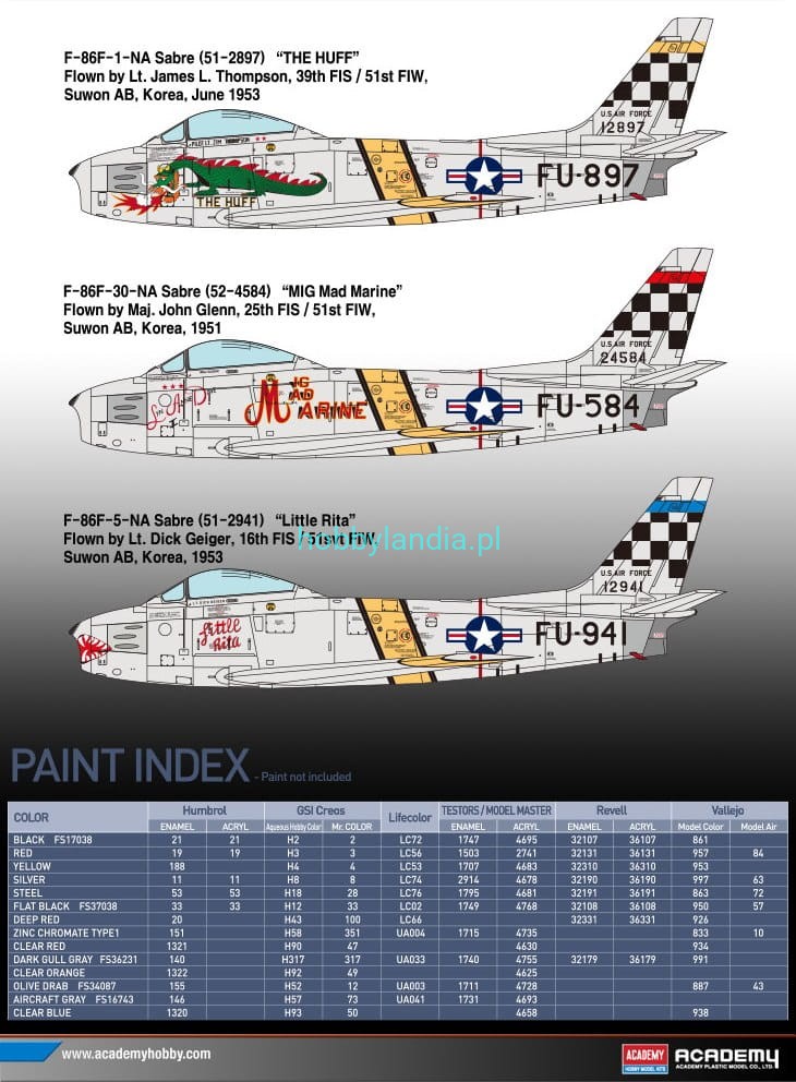 Amerykański samolot F-86F Sabre w skali 1:72, Academy 12546.