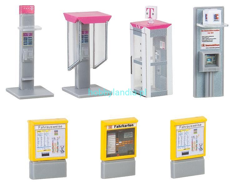 Budki telefoniczne, biletomaty, bankomat H0 1:87, Faller 180347.