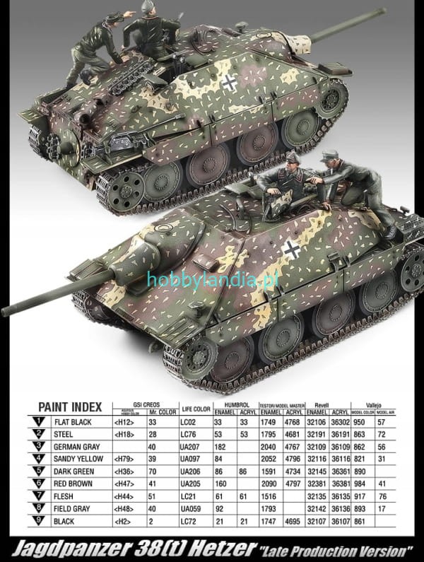 Niemieckie działo pancerne Jagdpanzer 38(t) Hetzer Late Version w skali 1:35, Academy 13230.