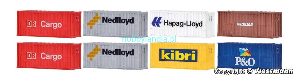 Kontenery 20-stopowe H0-1:87, Kibri 10924, 8 szt., NA ZAMÓWIENIE