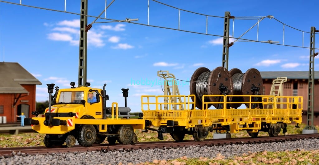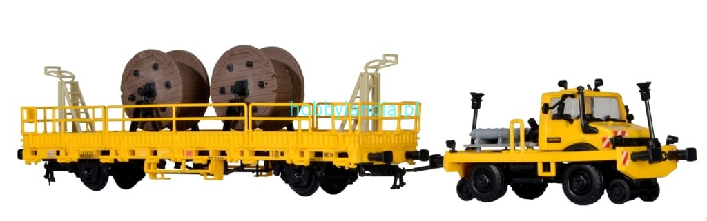 Unimog drogowo-torowy H0-1:87 z wagonem i ładunkiem, Kibri 16062, NA ZAMÓWIENIE