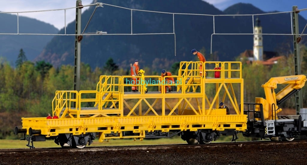 Wagon platforma z podestem do montażu sieci trakcyjnej H0 1:87, Kibri 26262.