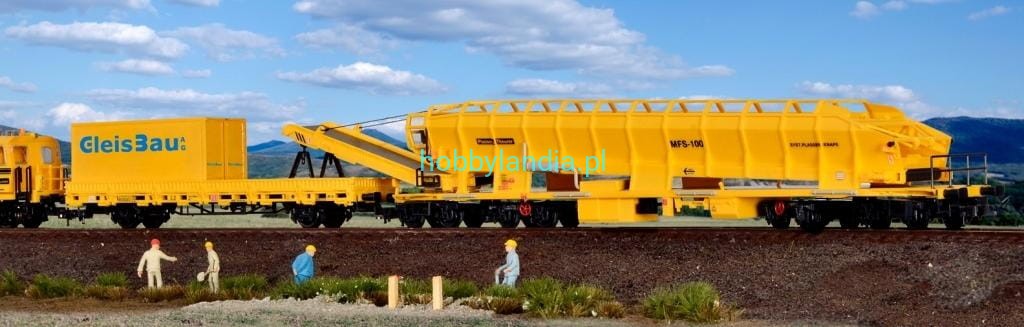 Wagon platforma z podporą i kontenerem GleisBau H0 1:87, Kibri 26264.