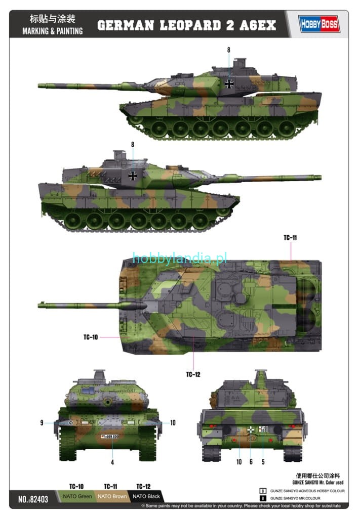 Niemiecki czołg Leopard 2A6 EX w skali 1:35 do sklejania, Hobby Boss 82403.