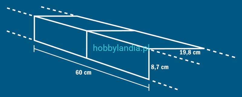 Wymiary całkowite: 60 cm x 8,7 cm x 19,8 cm (długość, szerokość, wysokość).
