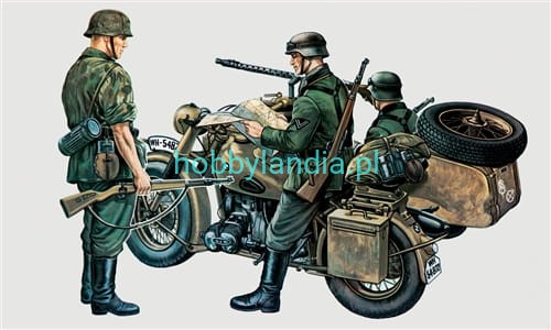 BMW R75 niemiecki motocykl wojskowy w skali 1:35 do sklejania, Italeri 0315.