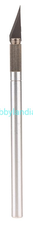 Stalowe ostrze SK5 (skalpel prosty), aluminiowa rękojeść z plastikową osłoną ochronną.