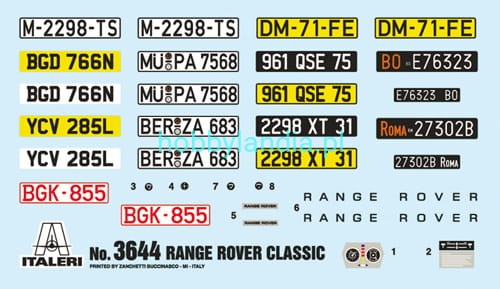 Samochód Range Rover Classic w skali 1:24, do sklejania, Italeri 3644.