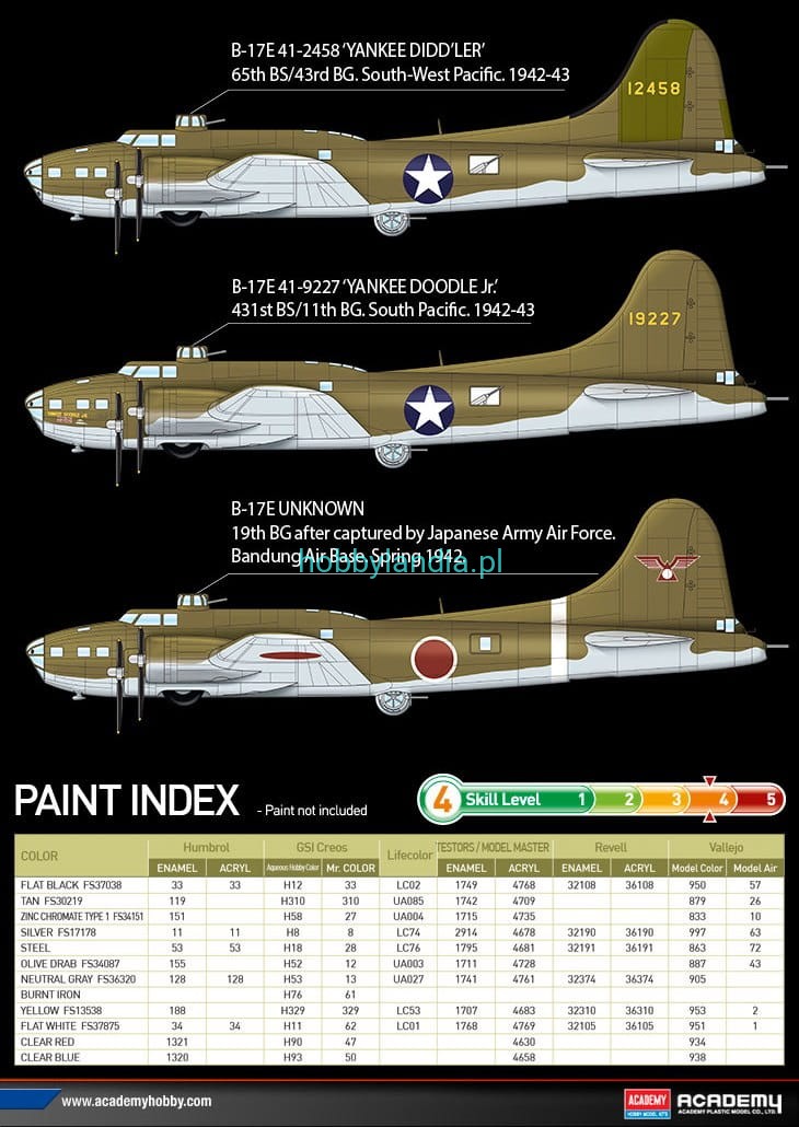 Amerykański bombowiec B-17E USAAF Pacific Theatr w skali 1:72, Academy 12533.