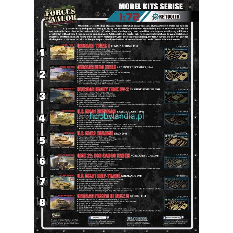 Amerykański czołg Czołg U.S. M1A2 Abrams 1:72 do sklejania, Forces of Valor 873005A.