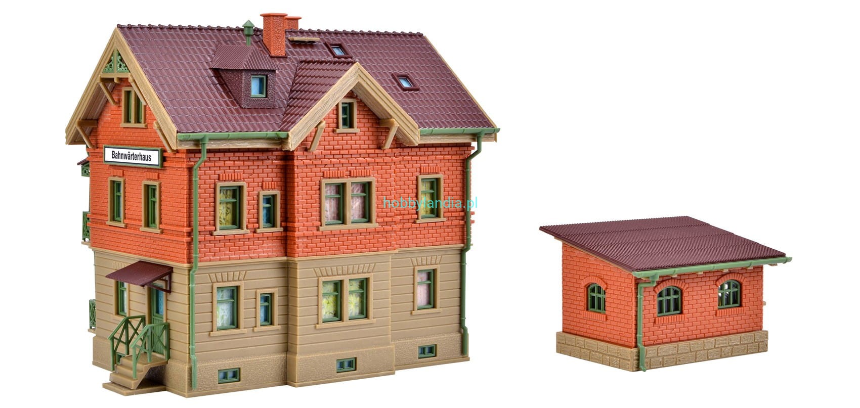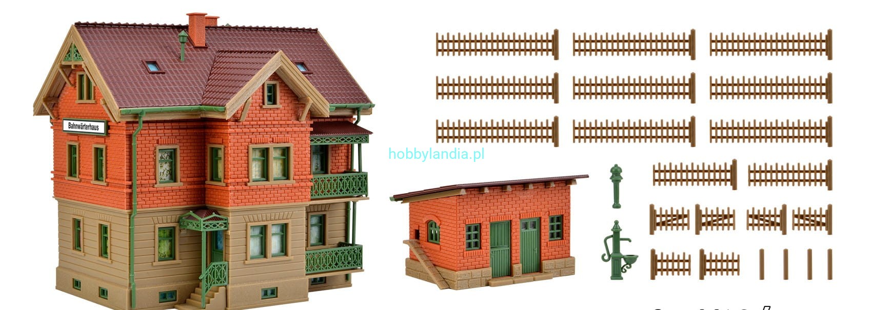 Dom dróżnika Esslingen z ogrodzeniem i akcesoriami H0-1:87, model do sklejania, Vollmer 43529.