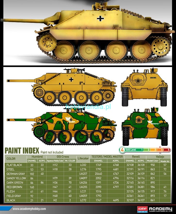 W zestawie z kalkomanią i taśmą maskującą do malowania kamuflażu.