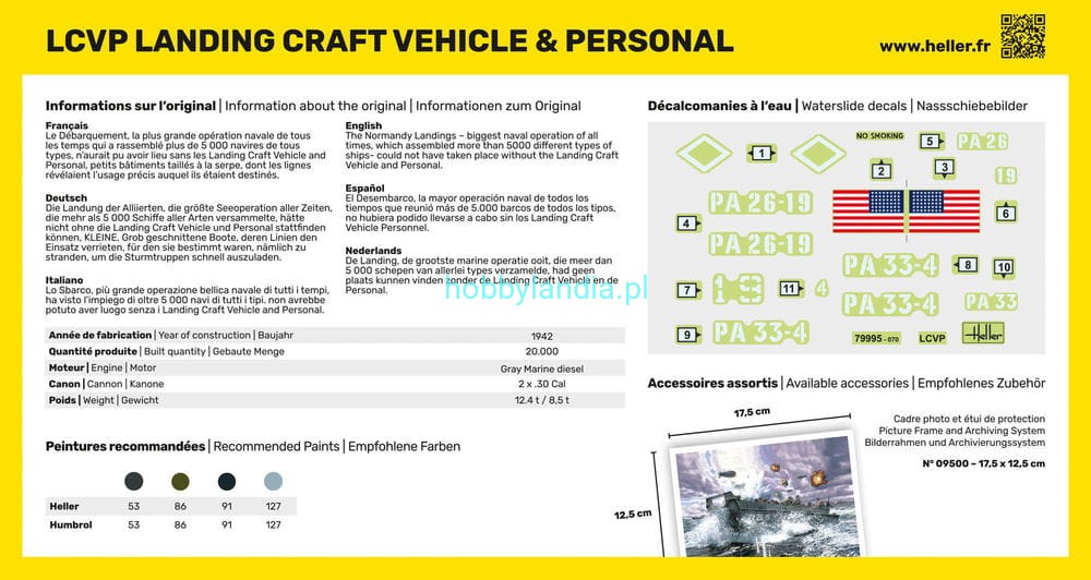 LCVP Landing Craft Vehicle + figurki 1:72 z klejem, farbami i pędzlem, Heller 56995, NA ZAMÓWIENIE