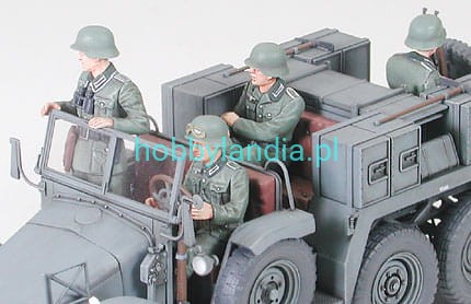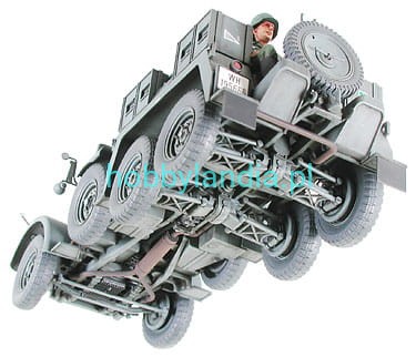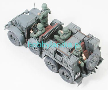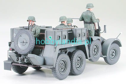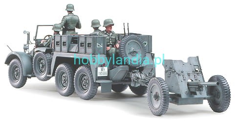 Niemiecki ciągnik transporter Krupp Protze 1ton (6x4) Kfz.69 z działem i figurkami with 3,7 cm Pak 36 and crew w 1:35, Tamiya 35259