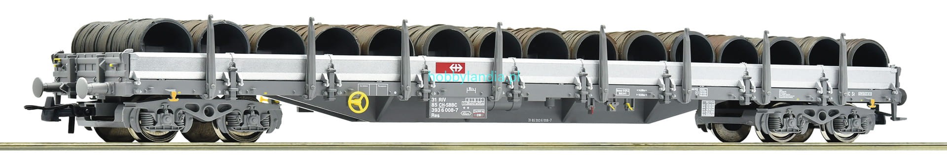 Wagon towarowy 4-osiowa platforma Res (z rolkami drutu) H0-1:87 SBB ep. VI, Roco 76591.B. Nowość Roco 2025.