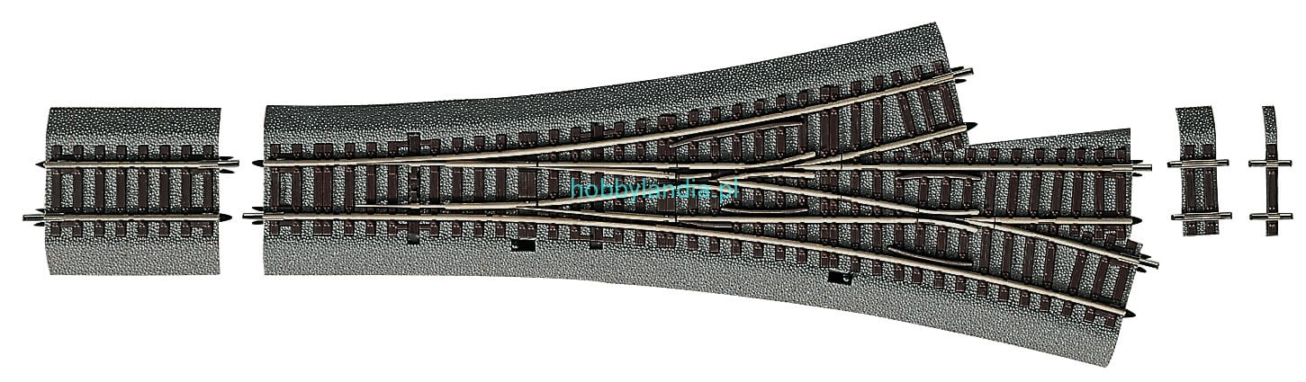 BEZ napędu. Pasujące napędy rozjazdów Roco: 42620*2szt albo 42624*2szt (elektryczne).