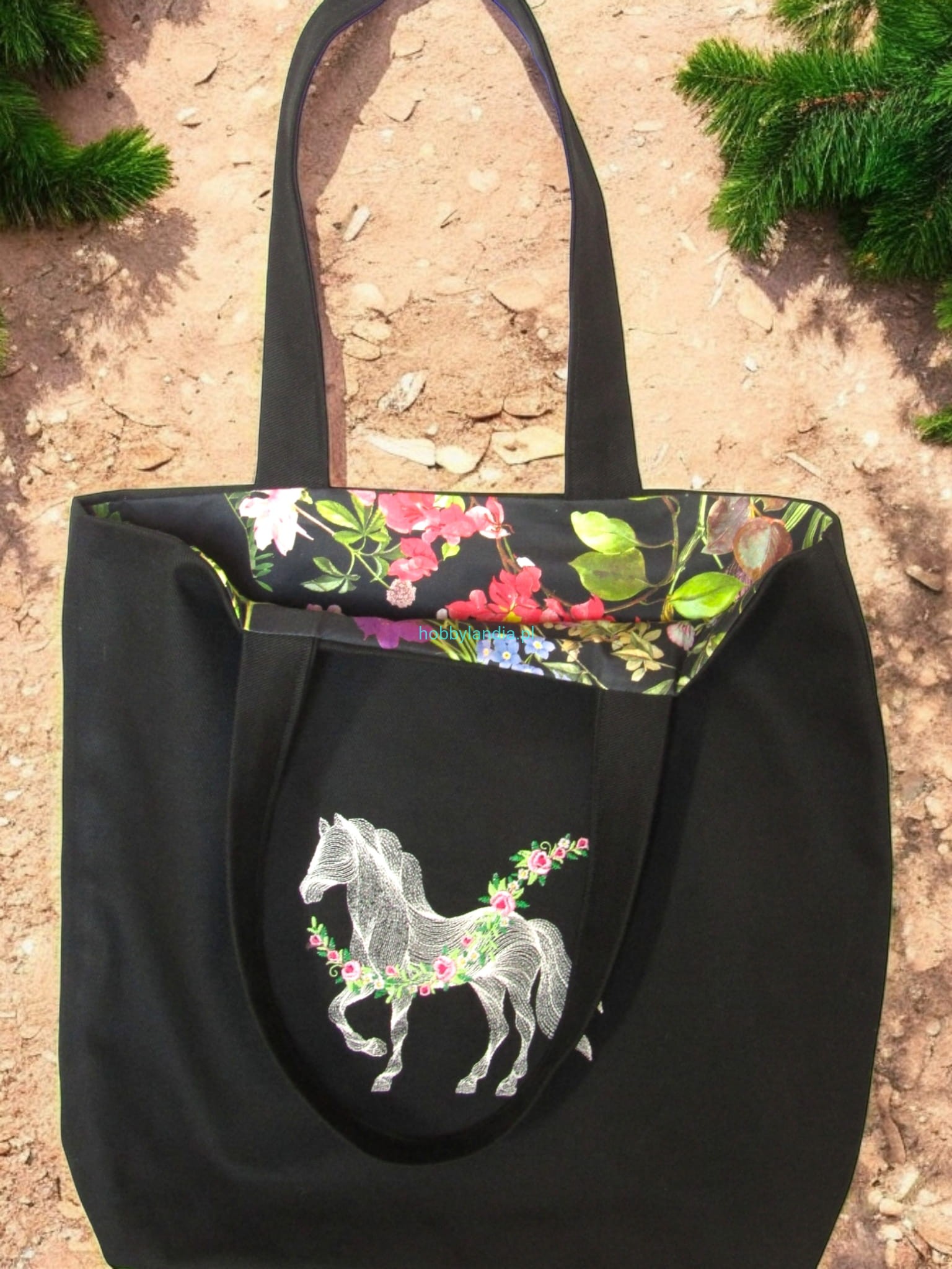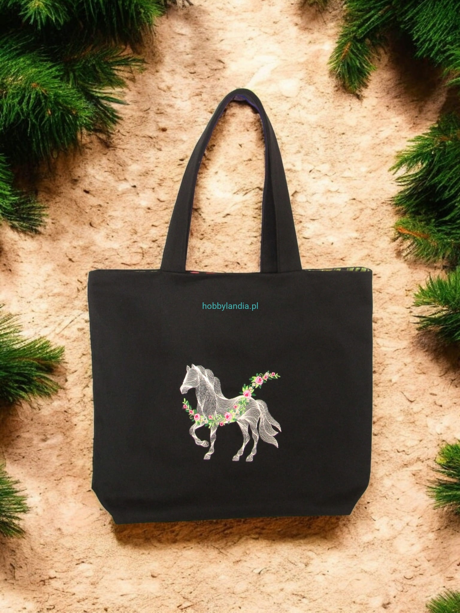 Ekologiczna torba na zakupy z haftem konia to unikatowy produkt, który możesz zamówić tylko u nas.