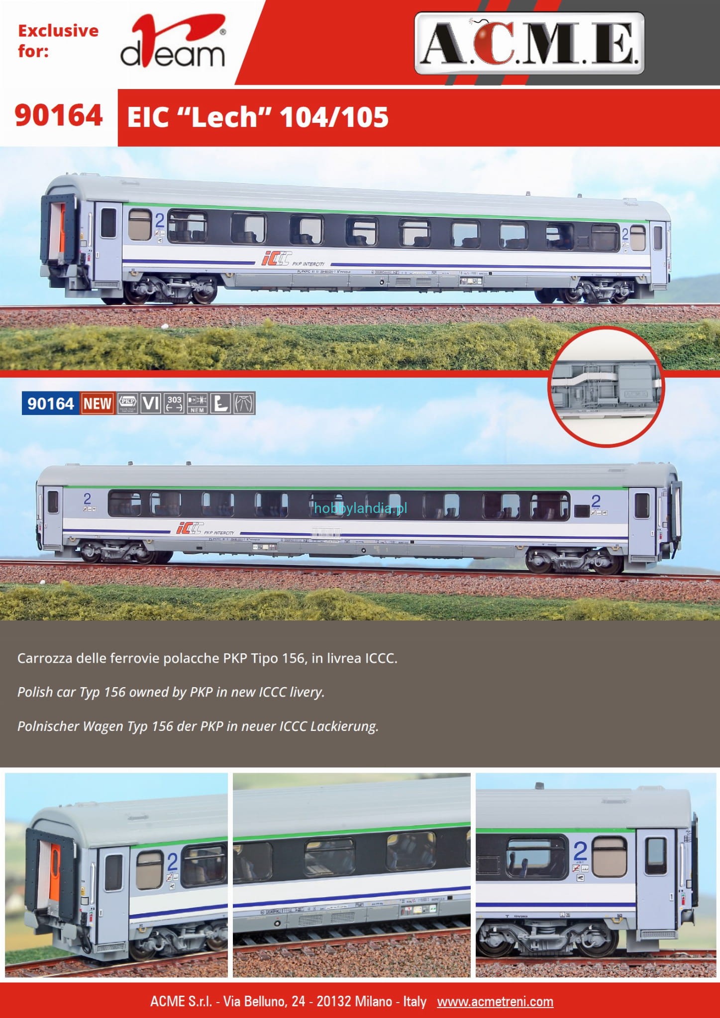 Wagon 4-osiowy osobowy typ 156 2 kl. PKP IC ep. VI H0 1:87, ACME 90164. Exclusive for DREAM. Nowość 2021-2022.
