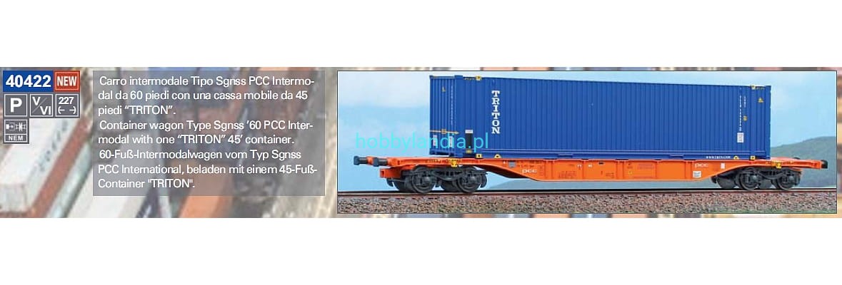 Wagon platforma Sgnss 60* z kontenerem 45* Triton H0-1:87 PCC Intermodal ep. V-VI, ACME 40422.Nowość 2022.