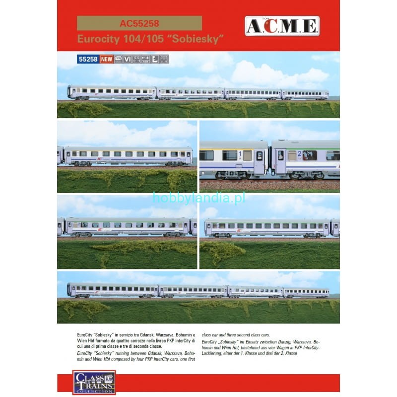 Zestaw 4 wagonów osobowych PKP IC Eurocity 104-105 Sobieski ep. VI H0-1:87, ACME 55258, NA ZAMÓWIENIE