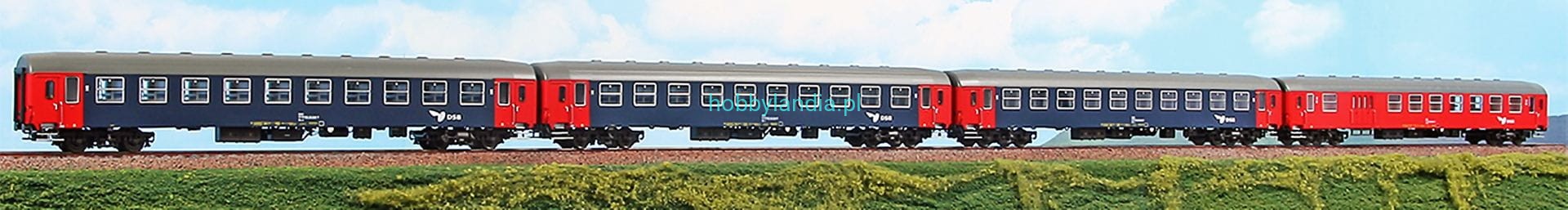 Zestaw 4 wagonów wakacyjnego ekspresu 'Kopenhagen-Hamburg-Venedig' (3 wagony sypialne i 1 wagon bagazowy z barem), DSB/DB AG ep. V H0-1:87, ACME 55295.