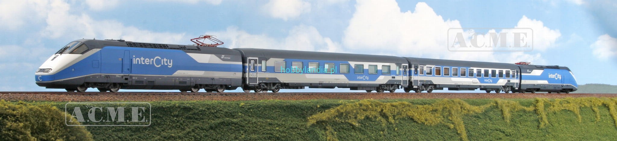 Pociąg Intercity 4-cz. z lokomotywami E.414 ( jeden z nich atrap) w H0-1:87 Trenitalia/FS ep. VI, ACME 70116.