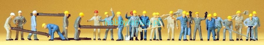 Robotnicy kolejowi w kaskach, Preiser 14403, 24 figurki H0-1:87