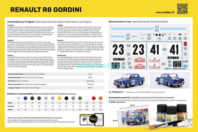 Renault R8 Gordini 1:24 z klejem, farbami i pędzlem, Heller 56700