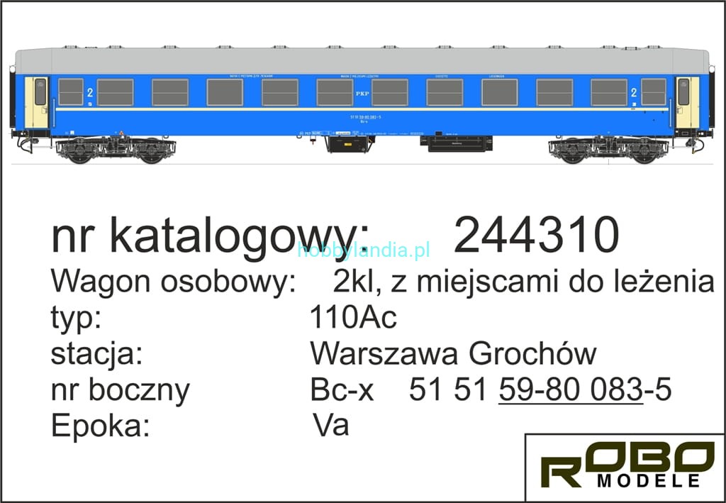 Wagon kuszetka 2. kl. 111Ac H0-1:87 Warszawa Grochów PKP ep. Va, Robo 244310, NA ZAMÓWIENIE