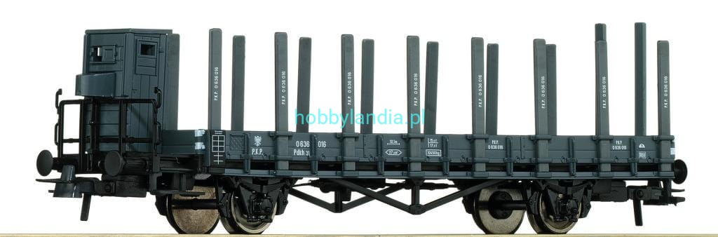 Wagon platforma Pdkh 31 PKP H0 1:87 z kłonicami i budką hamulcową, Roco 66349.