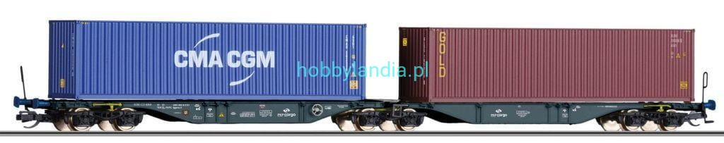 Wagon towarowy platforma Sggmrss PKP Cargo TT 1:120 z 2 kontenerami 40 ft, Tillig 18061. Nowość 2020 roku.