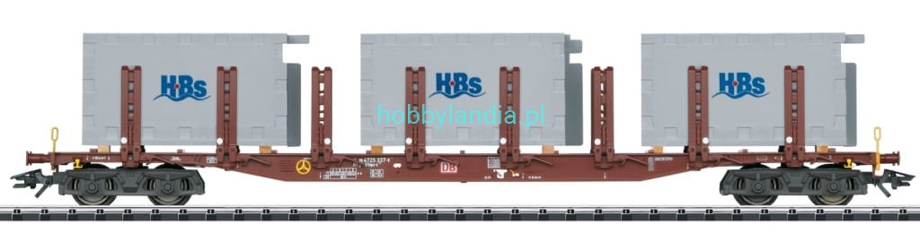 Taniej w zestawie!Wagon platforma Snps 719 H0 1:87 z ładunkiem systemów łazienkowych Hellweg Badsysteme z zestawu Trix 24141.