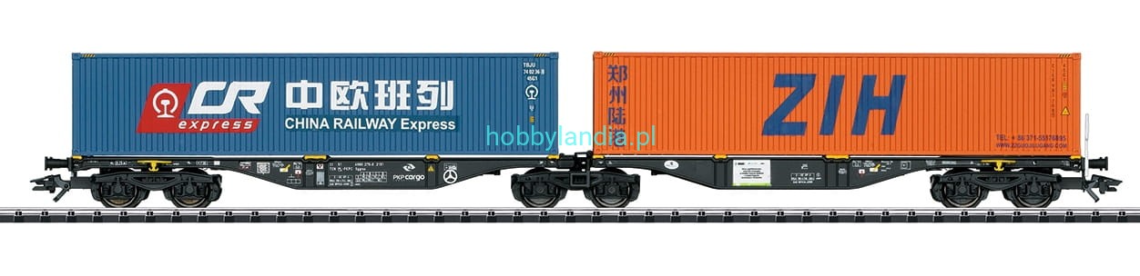 Platforma z 2 kontenerami 40 ft H0 1:87 - ZIH oraz China Railway Express.