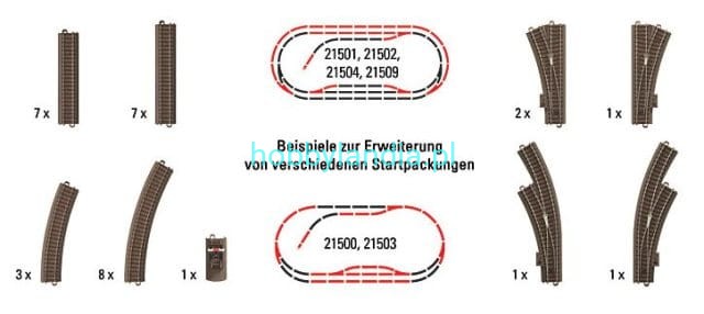 - 11 torów łukowych: 3 szt. - R2 437,5 mm 24,3 st - Trix 62224, 8 szt. - R3 515 mm 24,3 st - Trix 62230