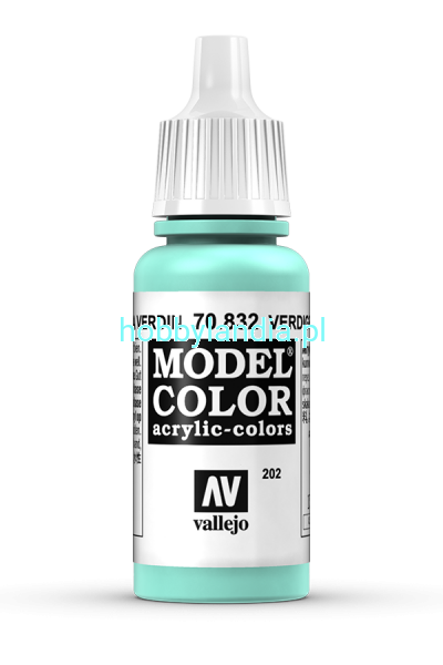 Półprzezroczysta farba akrylowa Vallejo 70832 Model Color 202 Verdigris Glaze Transparent (błękitny wypłowiały z połyskiem, glazura).