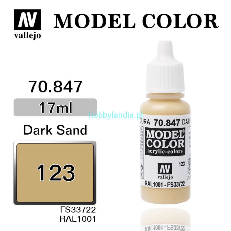 Matowa farba akrylowa Vallejo 70847 Model Color 123 Dark Sand (beżowy, ciemny piaskowy) / RAL 1001 / FS 33722.